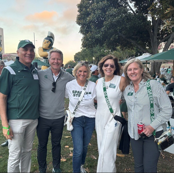 Before kickoff, they joined over 1,200 fellow Spartans at a spirited tailgate, where Megan connected with MSU President Kevin Guskiewicz and his wife, along with longtime friend and Board of Trustees member Renee Knake Jefferson and her husband.