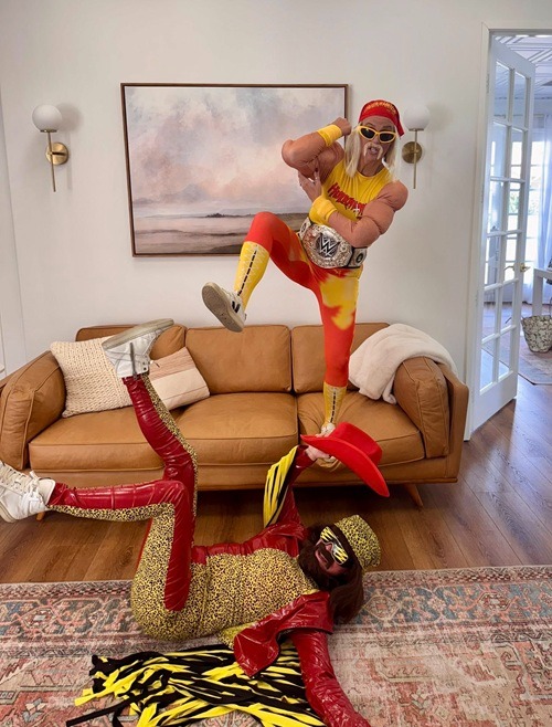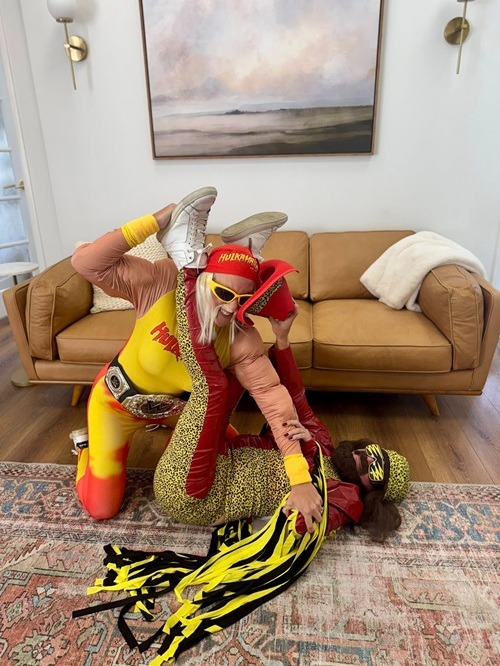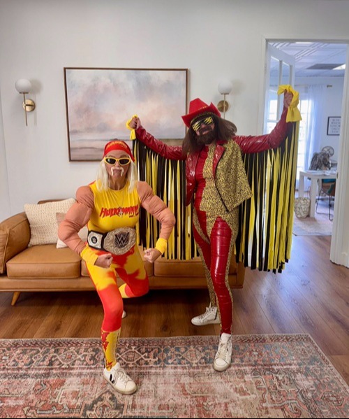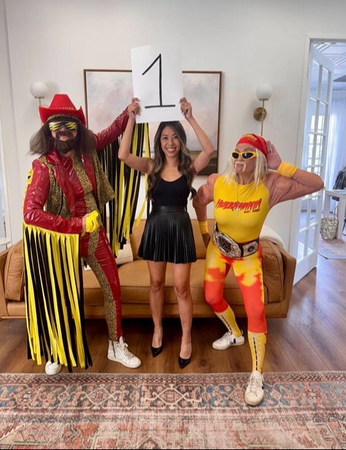 Megan brought the energy as Hulk Hogan, complete with the iconic mustache and bandana. Tenley matched the vibe as “Macho Man” Randy Savage, rocking fringe, sunglasses, and championship-level charisma. And to complete the scene, Lan took on the role of our official ring girl, keeping the crowd hyped and the costumes on point.
